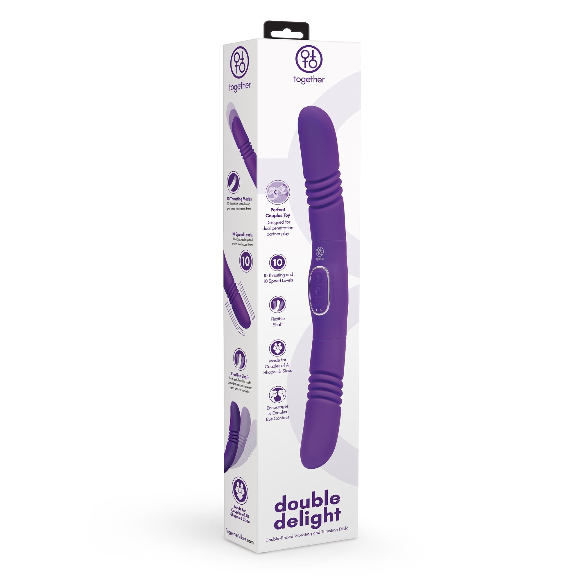 Get Together and enjoy a Double Delight, a cutting-edge couples' vibe designed to elevate intimate experiences with powerful vibrations and a sleek, deep-reaching shaft. This sleek and dual-ended stimulator offers an impressive range of 10 intensity levels, ranging from teasing whispers to intense vibration, ensuring an experience to satisfy couples' desires. Crafted from premium, body-safe silicone, this vibrator is ergonomically shaped for effortless handling and precise control. With easy-to-control buttons at the center, finding the perfect setting is effortless. Whether used solo or with a partner, Together's Double Delight promises to deliver unparalleled sensations, making it a must-have addition to any pleasure seeker's collection.