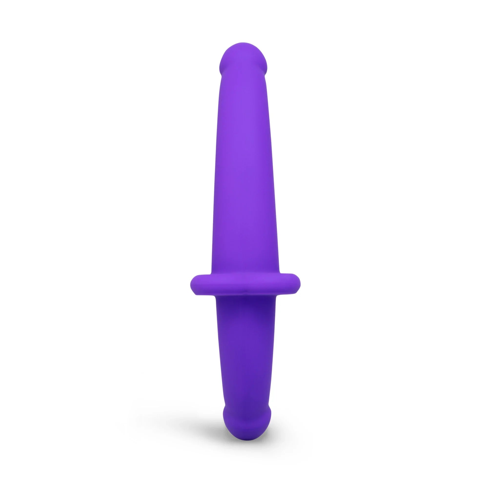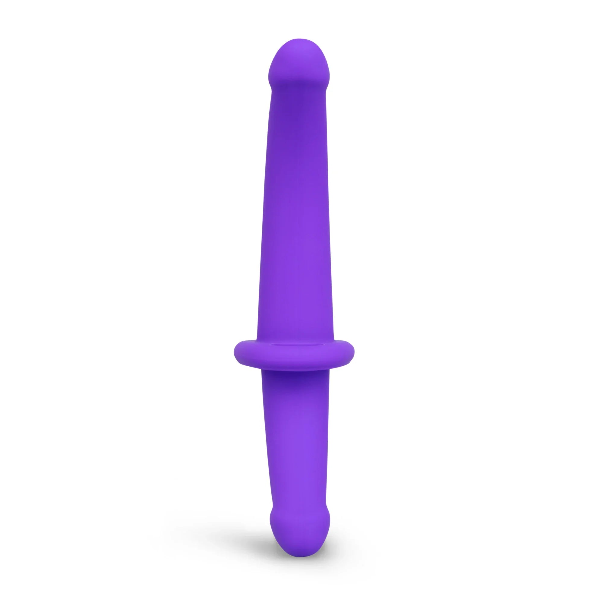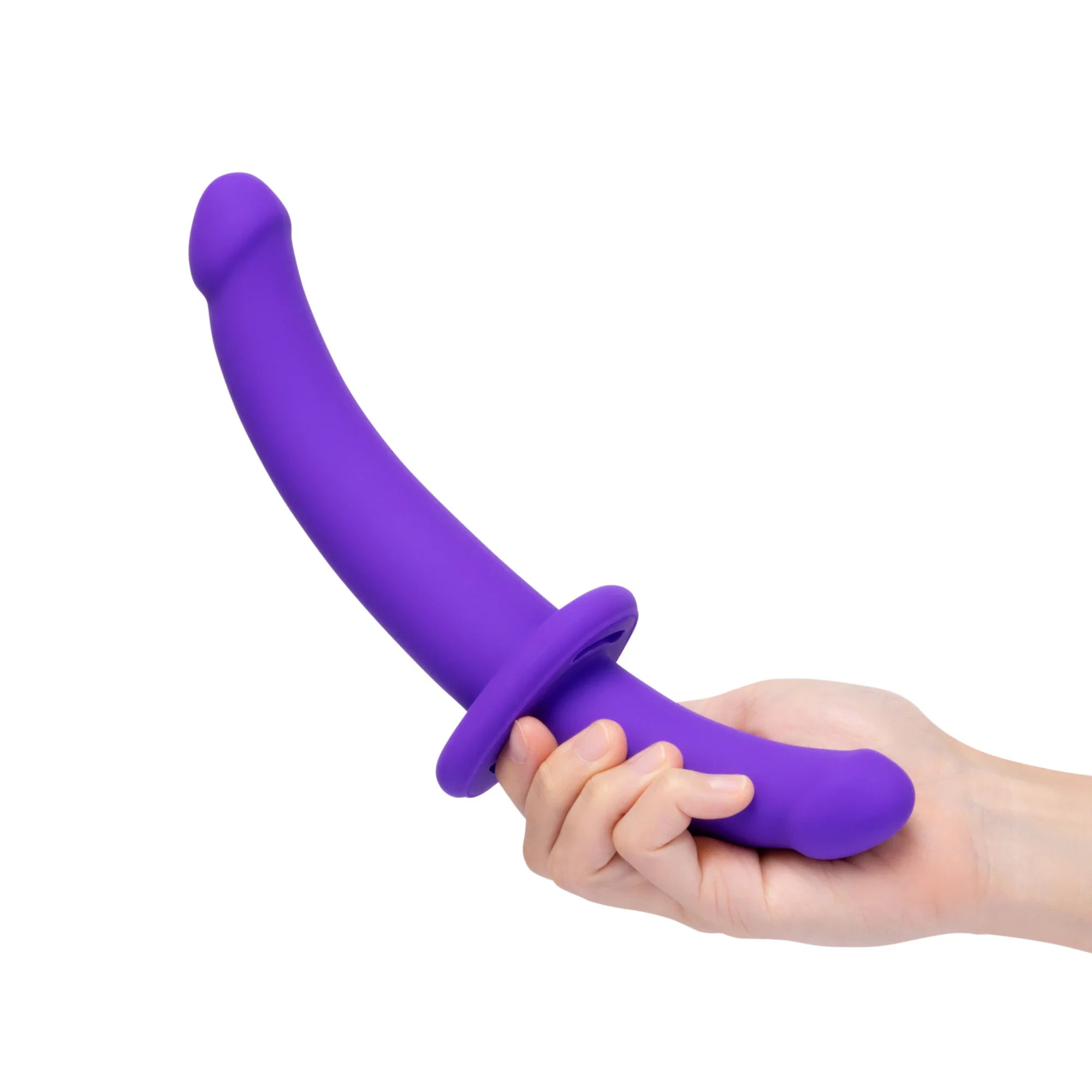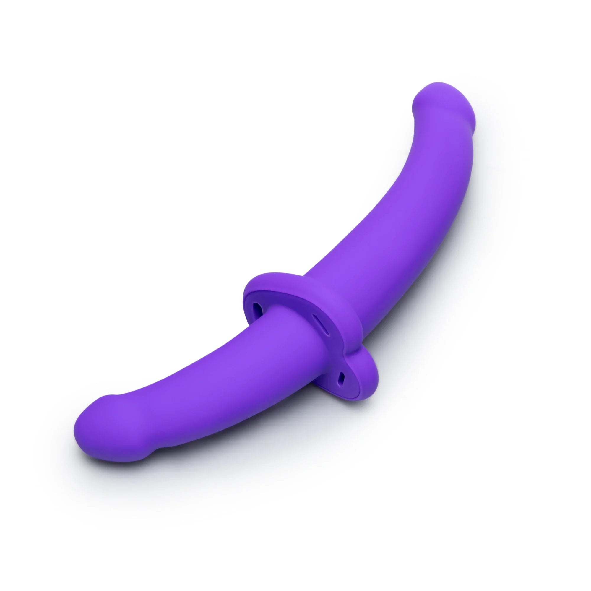 This double-ended dildo brings mutual penetration into your strap-on play. The wearer takes 5 inches internally while delivering 7 inches of curved silicone to their partner. Both shafts share a flared base that anchors into the included adjustable harness, holding everything secure while you thrust. The gentle curves target your pleasure spots, and the beginner-friendly 4.5-inch circumference keeps things comfortable for both bodies. Whether you're exploring pegging or deepening your strap-on repertoire, this set delivers shared sensation with a fit that works for waists up to 65 inches.
