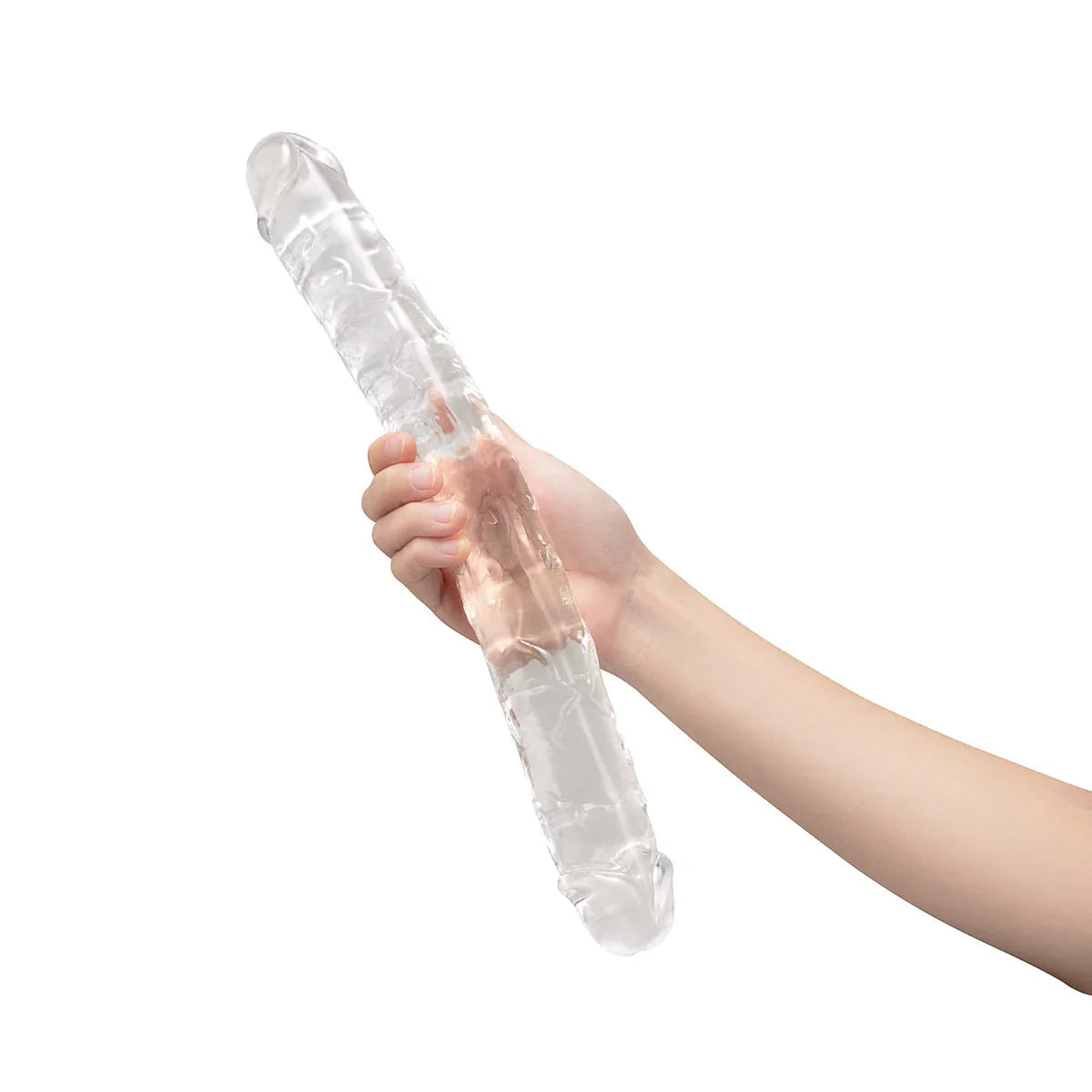 This 15-inch double-ended dildo brings impressive length and flexibility to your play. The clear jelly material offers a smooth finish and semi-transparent look that adds visual intrigue to shared moments or solo exploration. Whether you're experimenting with a partner or claiming every inch for yourself, the flexible design moves with your body. Lube generously and ease into the sensations - this is a toy that rewards patience and presence. Simple to clean, body-safe, and built for versatile pleasure.