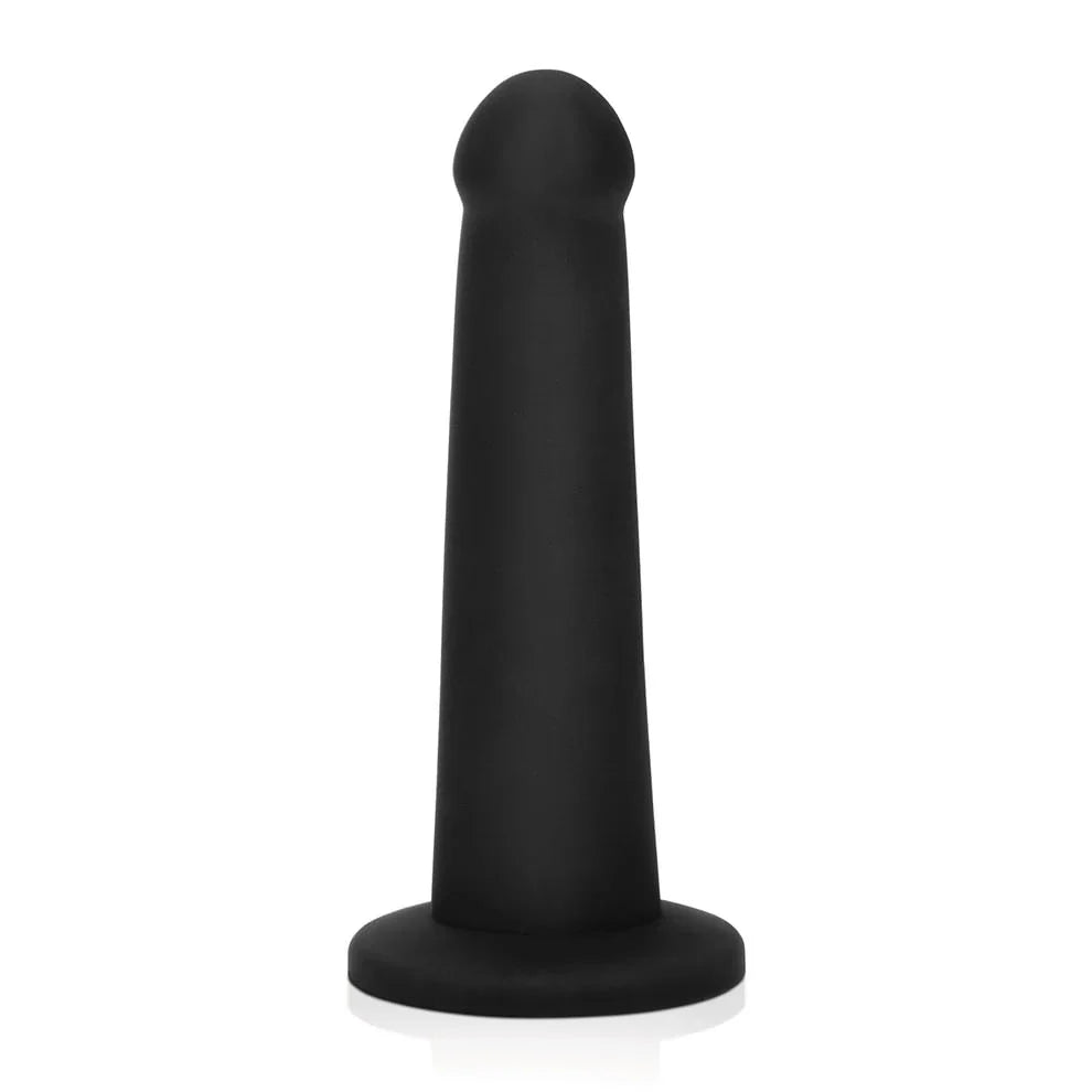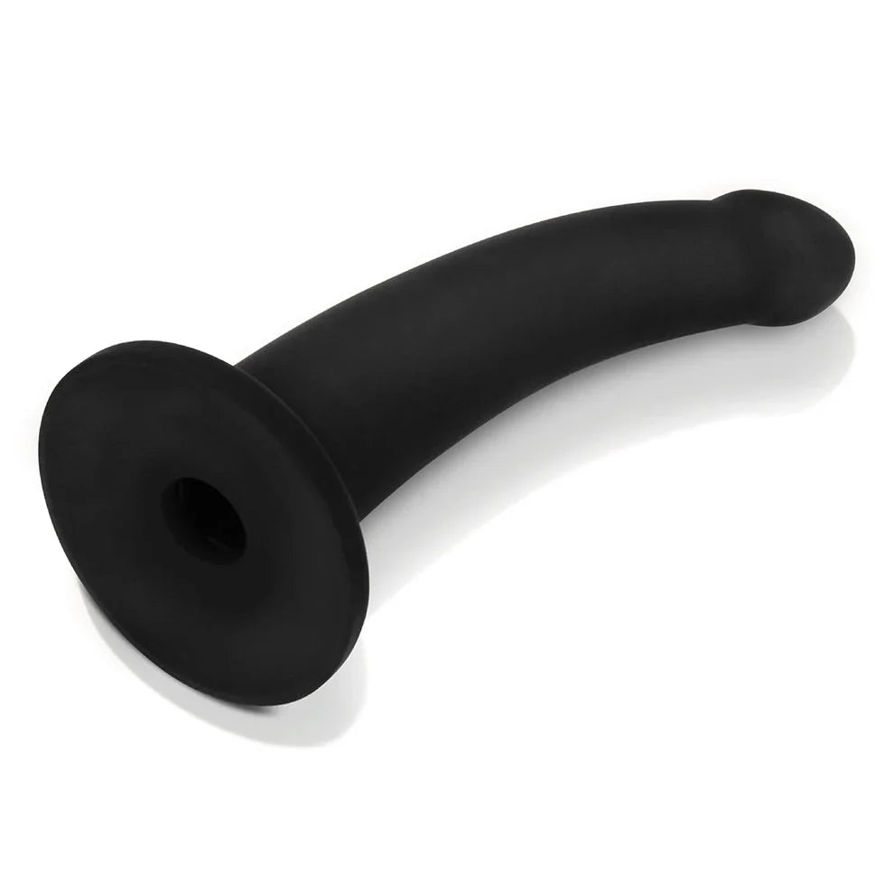This 7-inch black silicone dildo brings precision to pegging and solo anal play. The curved shaft is crafted to reach the P-spot or G-spot, while the flared base keeps things safe during backdoor adventures. The suction cup base sticks to smooth surfaces for hands-free exploration, or attach it to a harness with a 1.5-inch O-ring for shared pleasure. Body-safe silicone means you'll want to pair it with water-based lube only - silicone on silicone breaks down the material. Whether you're the wearer or receiver, this straightforward design delivers.
