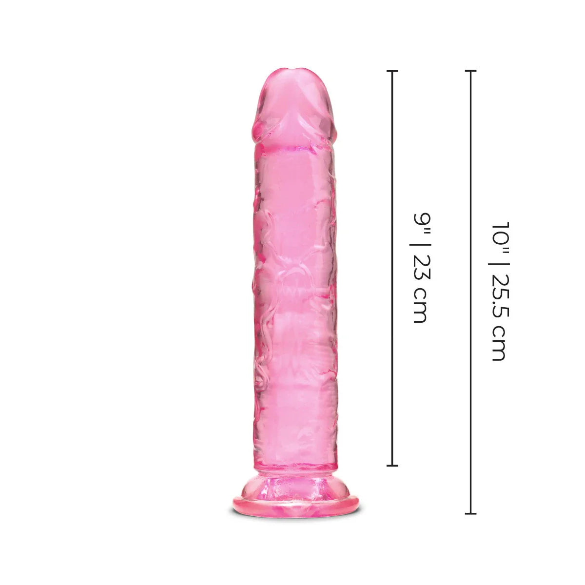 This 8.5-inch jelly dildo brings bold pink energy to your solo sessions or partnered play. The semi-transparent material offers flexibility and give, while the textured shaft adds sensation along the way. Its flared suction base sticks to smooth surfaces for hands-free exploration, or pairs with harnesses for strap-on fun. The smooth, flexible texture moves with your body, making it comfortable for extended play. Add your favourite water-based lube and let the textured ridges do their work - whether you're riding solo or sharing the pleasure with a partner.