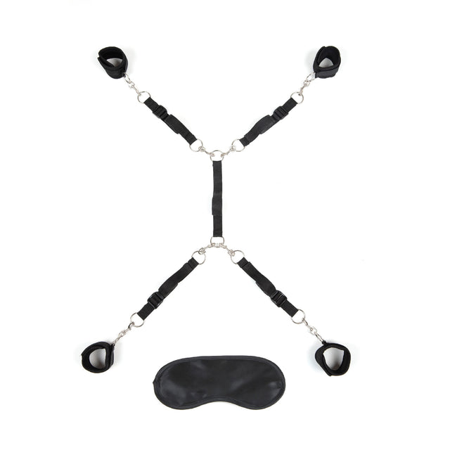 Turn any bed into a playground for restraint without drilling a single hole. This under-mattress system spreads your lover into a perfect X, arms and legs secured in soft neoprene cuffs while you explore every inch of their body. The straps adjust to fit most bed sizes, tucking neatly under the mattress for stability you can trust. Quick-release clips mean safety stays central, even when the intensity builds. Add the included blindfold and watch anticipation ripple across their skin. Durable, discreet, and designed for queer couples ready to experiment with power and restraint.