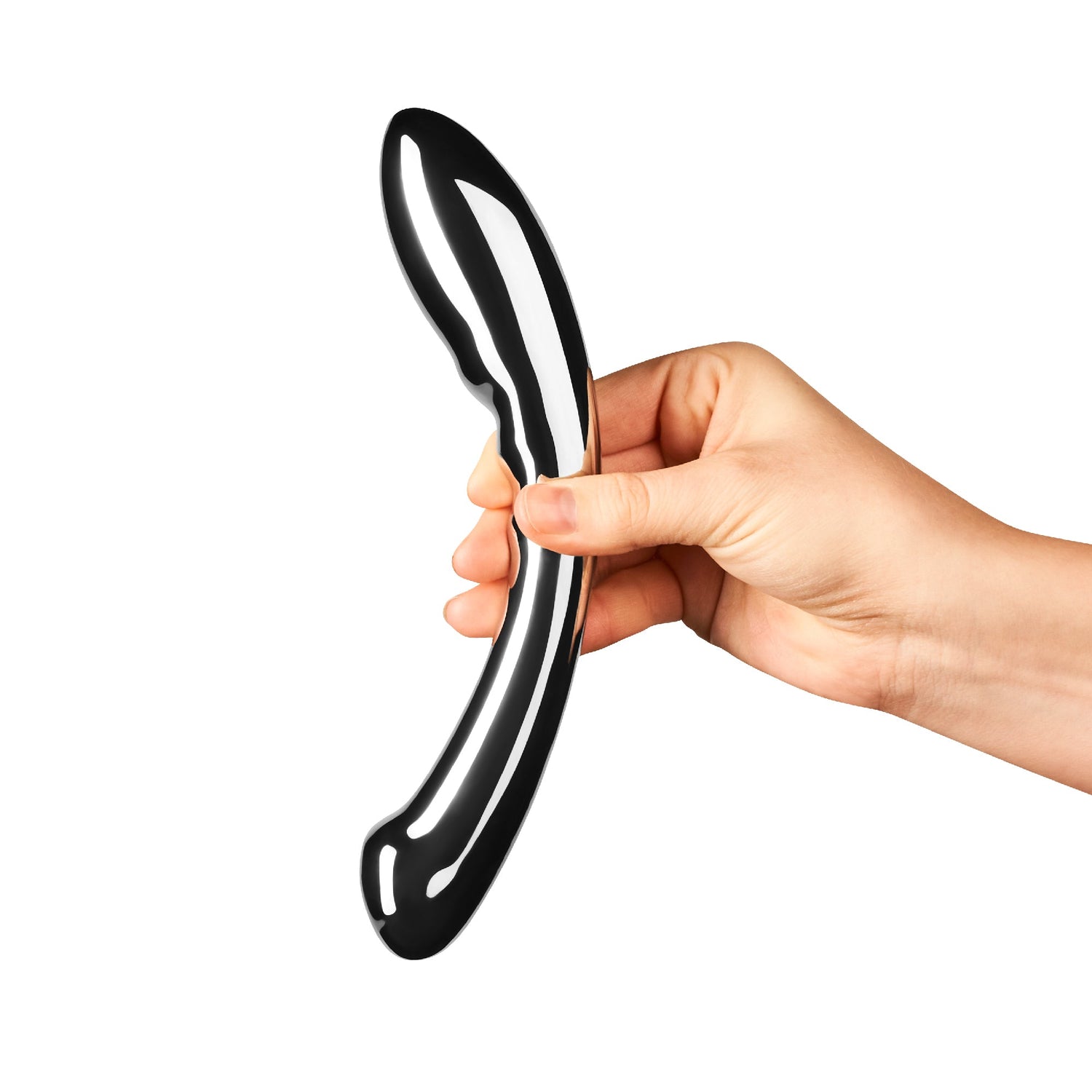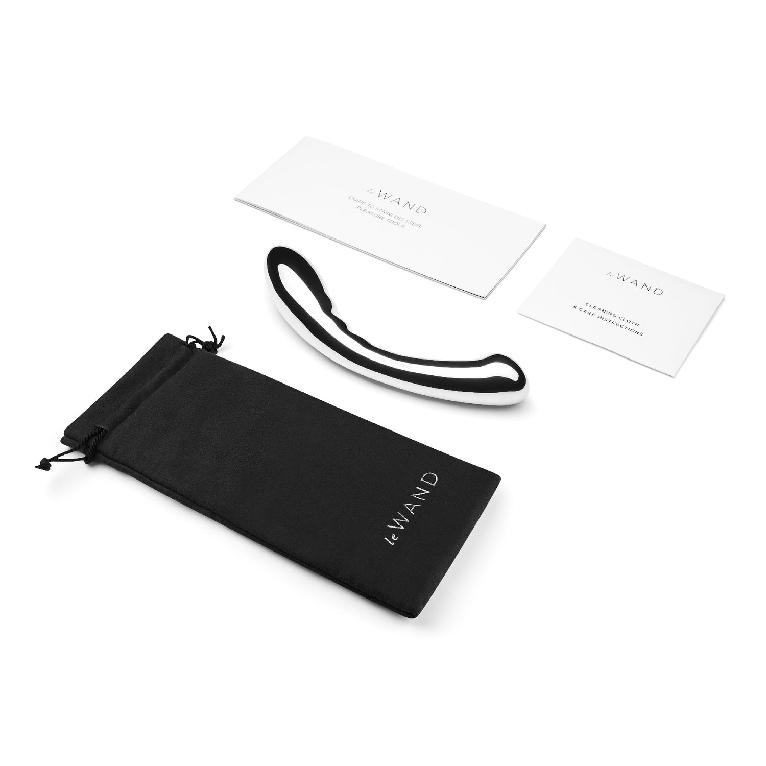 The Le Wand Arch is a double-ended stainless steel wand with a crescent shape that rests inside your body for G-spot or P-spot exploration. One end features a thicker 1.4-inch rippled head, while the other offers a slimmer 1.35-inch flattened end for anal play. The smooth, body-safe steel is shower-safe and easy to clean, and its substantial weight gives you control and presence. Pair it with heating or cooling lubricant for temperature play, solo or with a partner.