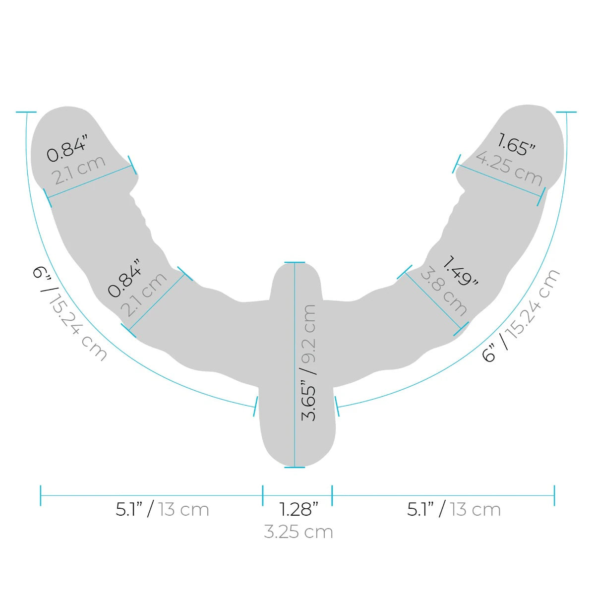 - 12 inches total length, 6 inches each side