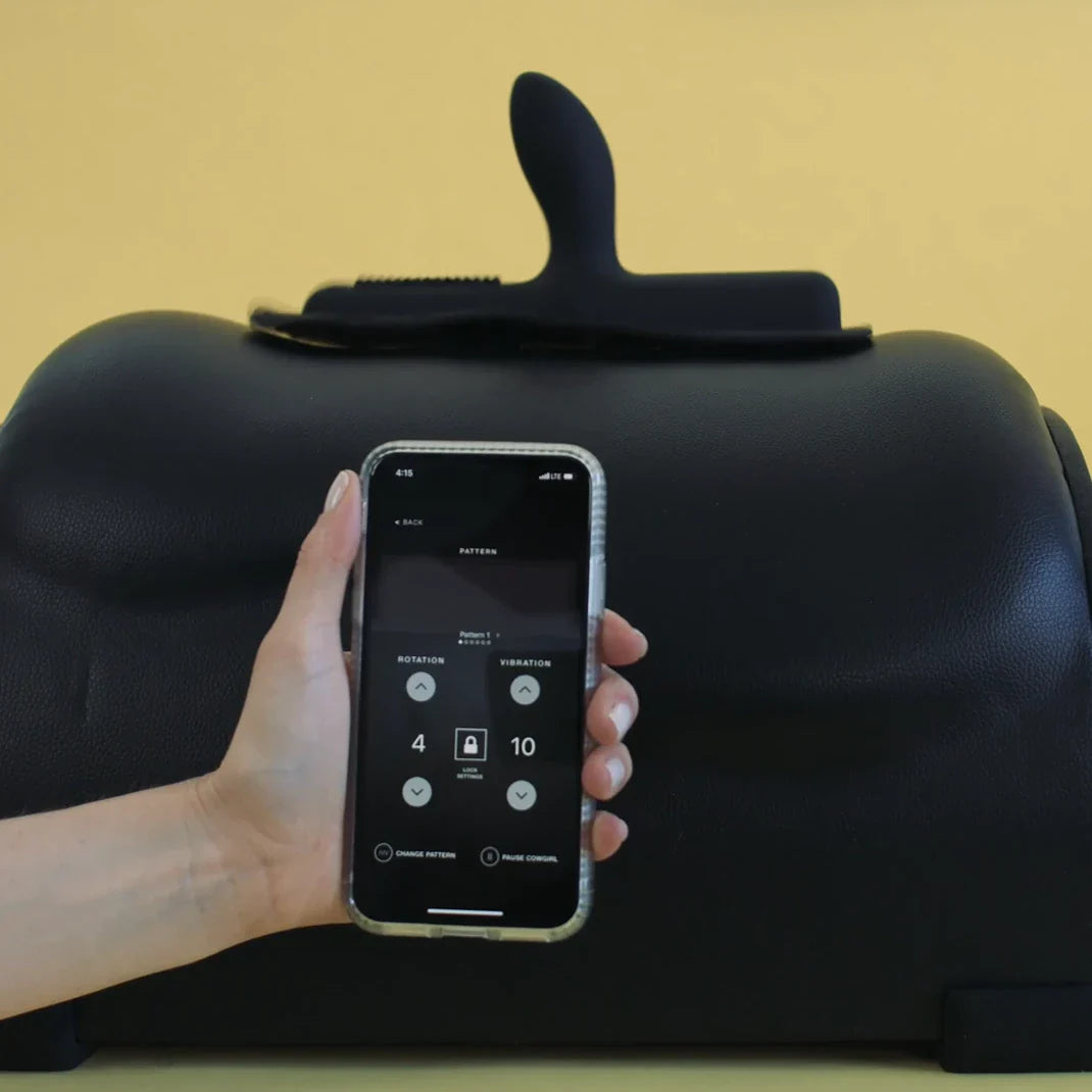 The Cowgirl Premium is a riding sex machine built for full-body exploration and hands-free intensity. Its handcrafted vegan leather saddle seat offers comfort padding while you control vibration patterns and variable-speed rotation independently. Choose between textured grinding or insertable pleasure with two included silicone attachments. A slip-resistant base keeps things stable, and you can command every sensation via corded remote or smartphone app. Precision-engineered for bodies up to 400 lbs, this machine delivers powerful, customisable stimulation without assembly required.