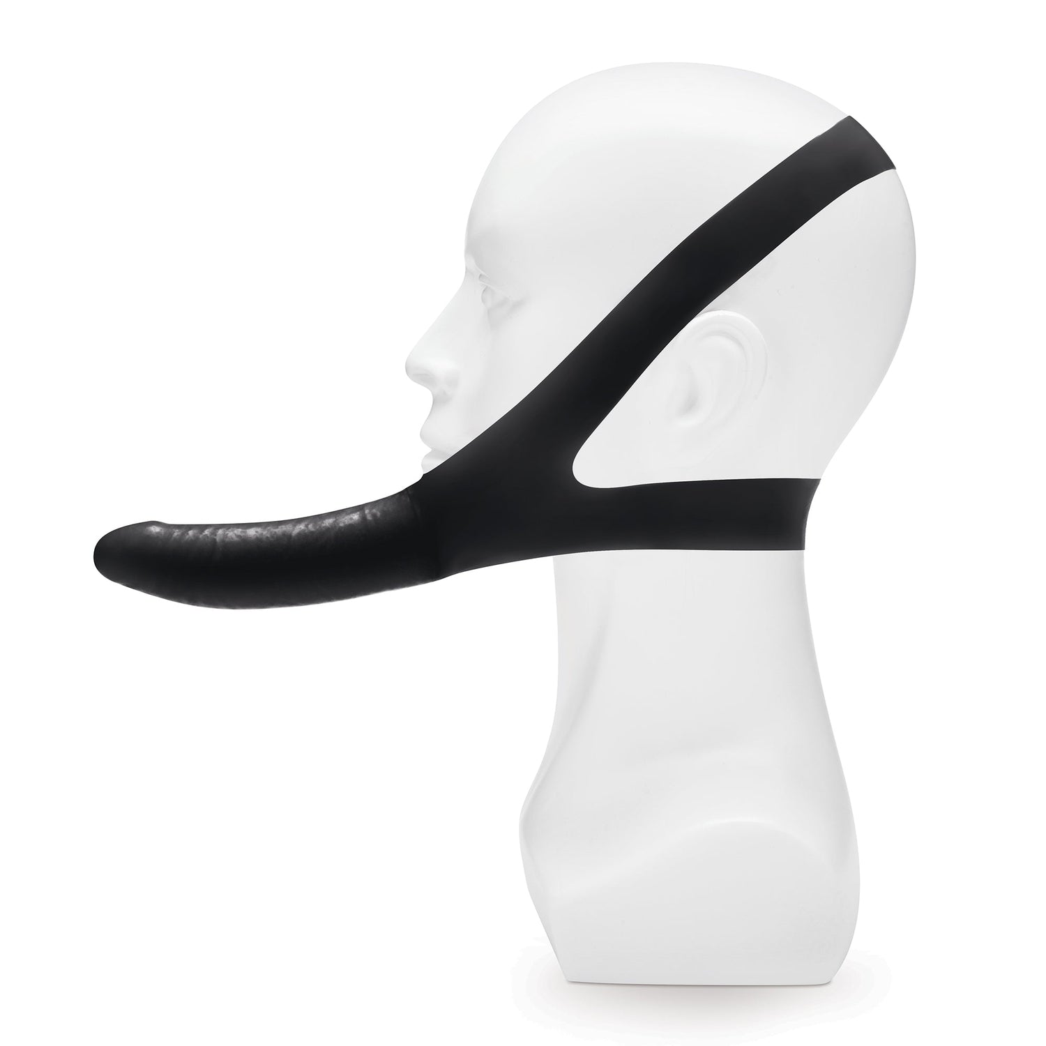 - Face-mounted chin dildo with adjustable headstraps